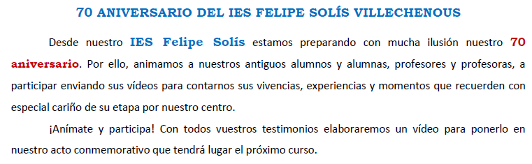 70 ANIVERSARIO IES FELIPE SOLÍS VILLECHENOUS