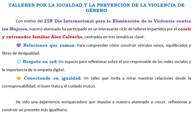 Talleres por la Igualdad y la Prevención de la VIOLENCIA DE GÉNERO